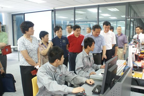 鲁部长一行参观了学院数控加工实训中心、模具制造实训中心、西门子工业控制自动化实训中心、柔性制造系统实训室、光机电一体化实训室、PLC与交流伺服技术实训室、综合网络布线实训室等场所。赵坚院长向部长介绍了学院的办学规模、专业设置、学制模式、实训中心建设、设备配置、校企合作以及毕业生就业率等方面的情况。