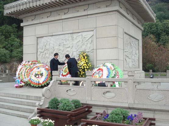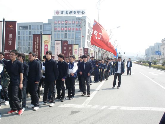 中午1点整,各专业系团总支分别带领60多名学生团员,教工团总支组织了10名教师团员,两百多人齐聚学院东门,在院团委副书记赵李华和各总支书记的带领下,大家经过半个多小时的步行,来到了苏州市横山烈士陵园,在高大的革命烈士纪念碑前,全体团员青年列队默哀致敬,向烈士们敬献花圈,院团委学生委员孙磊同学代表大家致悼词。