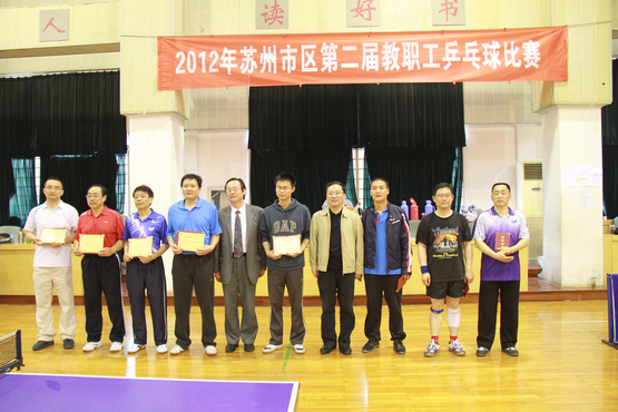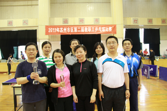 4月20日、21日在苏州田家炳高级中学举行的“2012年苏州市区第二届教职工乒乓球比赛”中,我院教工乒乓球队经过努力拼搏,过关斩将,最终获得男子团体第一和女子团体第三的好成绩。