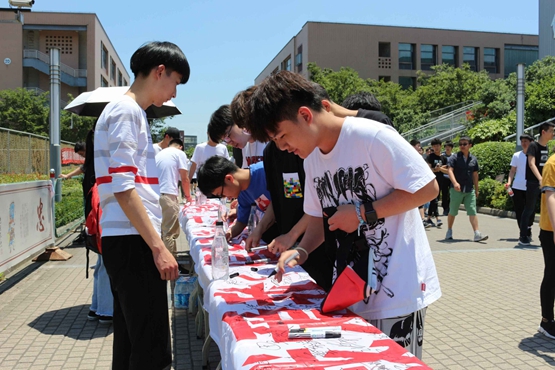 当天中午,为宣传心理健康,学生工作处、团委在学院食堂门口开展了一次横幅签名活动。课后,同学们陆续来到食堂就餐,心灵驿站社团的成员们早已准备好了横幅和马克笔,等待同学们的签名。虽然烈日当空,气温高达34℃,但是同学们的热情没有削减,他们纷纷在横幅上认真地签下了自己的名字。