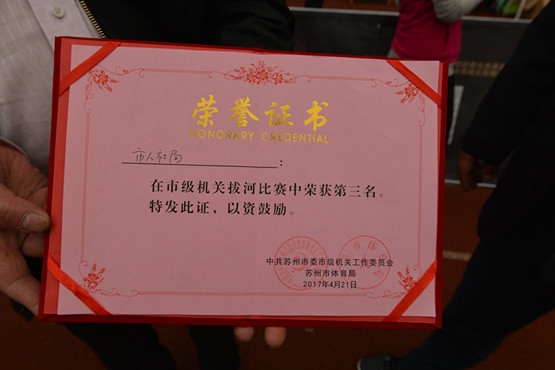 为积极响应市委全民健身的倡议,提高全民健身热情。4月21日,由我院教职工组成的人社局代表队在市民健身中心体育场参加了2017市级机关拔河比赛,经过激烈角逐,我们获得了第三名的优异成绩。
