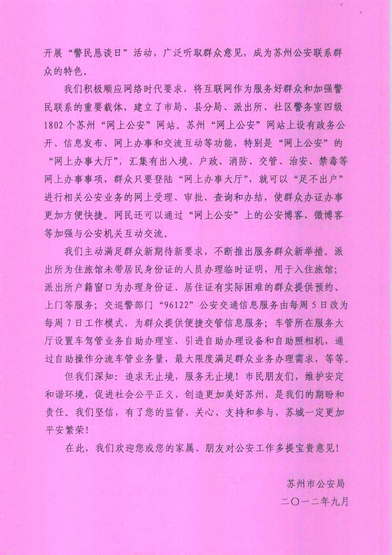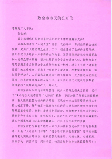 苏州市公安局致全市市民的公开信