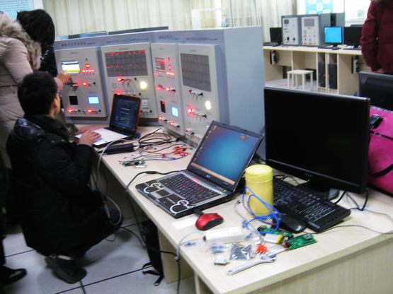 我系教师首先参观了苏州职教中心的物联网实训室,然后参加了实训项目的培训。南京五十五研究所的研究员向老师和同学们介绍了物联网应用实训平台的的基本情况,将ARM开发模块、智能视频模块、射频识别模块、LCD液晶显示模块、LED点阵显示模块、智能插座模块、智能照明子系统模块、调音喇叭模块、调速电机模块以及多个并串接口等实训器材进行现场连接展示,并对实训平台上可以做的部分实训项目加以讲解和现场答疑。