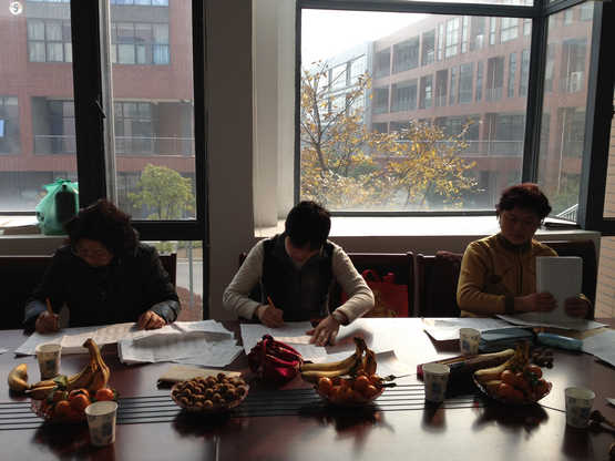 紧张的阅卷结束后,三位领导和会计组汤晓红、方旭、魏涛、周羽老师进行了简短交流,财政局会计处处长张幼华说:“现在虽然会计电算化了,会计在日常工作中也远离了算盘,但作为一名会计从业人员,珠算技能是一项重要的职业素养,虽然不明确要求考级,但从业人员实际水平必须达到五级,加减乘除都要会使用,希望技师学院能将算盘技术一届一届好好传承下去。”财政局人事处卢清也回顾了她自己学生时代苦练珠算技法的时光,与创意服务系会计组老师一起分享了学习珠算的心得体会。创意服务系副主任汤晓红介绍了自2009年以来,系部每年针对会计专业在校生会安排专场进行珠算定级考试的情况。希望借此督促学生在平时的学习中强化技能训练,提高自身素质。学生在珠算协会推荐的专业老师指导下,比速度、比正确率、比细心,苦训加巧干,有许多学生在初次定级中就顺利通过。学院领导也很重视,去年2010级6个班定级考试中,院党委书记、院长甘志雄亲临考试现场,为学生加油。