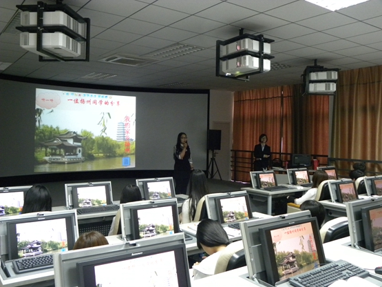 杨立琴老师开设的《江苏导游基础知识―扬州》公开课,以扬州籍学生普通话扬州话双语介绍家乡的风景与小吃导入课题。以教师角色扮演导游带着学生模拟的游客团出发去扬州一日游,并通过音频、视频和3D导游教学软件,图文并茂、绘声绘色地完成了理论教学内容。杨老师安排了2位学生充当瘦西湖讲解员,学生扮演的导游语言准确、生动,富有美感性和现场性,整堂课教学节奏明快,内容清晰明了,方法灵活多变,师生互动愉悦,学生喜闻乐见,收效甚好。