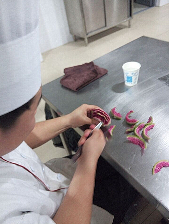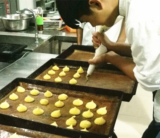 因为烹饪专业的特殊性,不少师生第一次观摩了制作过程。各种花式蒸饺的制作、苏州船点的制作以及艺术蛋糕的制作过程看得学生们流连忘返。此次活动所有品尝的中西式点心均在李付才老师的亲自监督下完成,不加任何添加剂和色素,并使用健康、正规的食物原材料,吃过的师生都说味道一流、令人回味无穷。