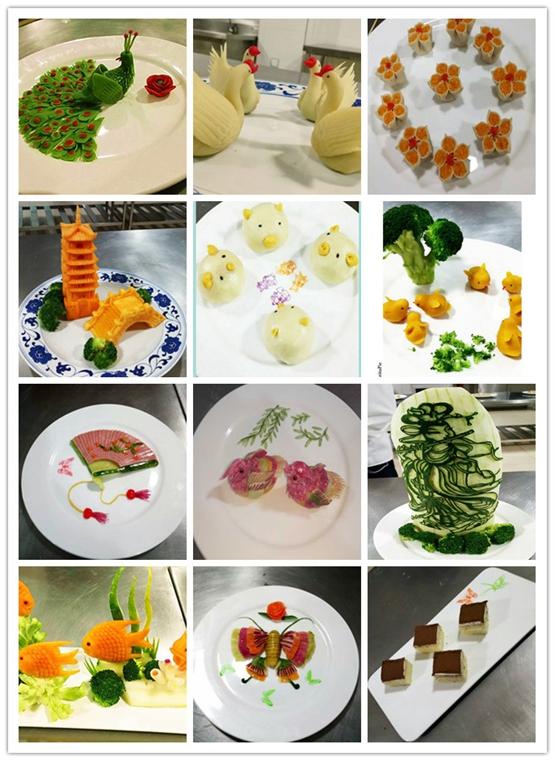 本次活动分三个部分内容:烹饪作品展示、烹饪技能演示、中西式点心品尝。烹饪作品有各种中西式点心、艺术拼盘、食品雕刻艺术。前来观摩的师生被一个个精美的作品惊叹得赞不绝口,不停的用手机拍摄喜欢的作品。在烹饪班同学的解说下,师生们详细了解一些作品的制作过程。学工处鲁柱副处长带着好奇,还特意现场学习西点制作。