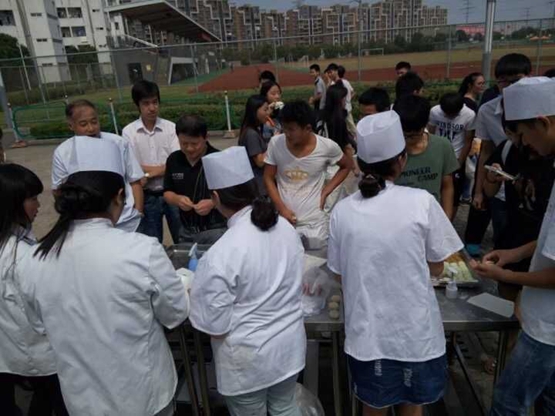 烹饪班学生的室外献艺,立即引起很多师生驻足观看,现场交流甚是热闹。先看到的师生还品尝到了新鲜的冰皮月饼,其甜美的馅心、QQ的外皮让大家赞不绝口。创意服务系组织的此次活动提供了与广大师生之间近距离的饮食文化交流,增强了大家对于中国饮食文化及节日风俗的理解,烹饪班学生也感到了自己所学专业的博大精深。