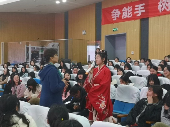 创意服务系汤晓红副主任(主持工作)首先做开场介绍,并结合本系特色,勉励女生们要敞开胸怀,拥抱青春,勇做新时代的追梦人,让“她魅力”、“她风采”、“她力量”尽情绽放在广阔天地间。