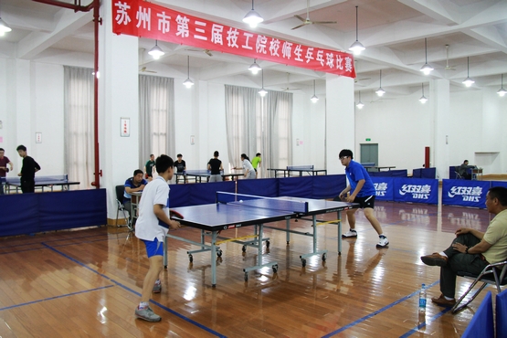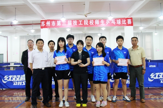 为了迎接即将在苏州举办的世界乒乓球比赛的到来,培养大家对乒乓球运动的热情,苏州市第三届技工院校师生乒乓球比赛于2014年5月24日在我院体育馆一楼顺利进行。我院选手在教练的辛勤教导下,通过奋力拼搏,最终获得了团体冠军,并得到了学生组女单第一名,男单三四名的好成绩。
