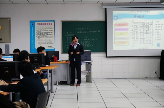 王老师首先从提问开始,简单地复习回顾了上节课的重点内容,学生们表现得非常主动积极,课堂气氛一下子活跃起来。随后王老师运用塑料制品实物引出课程内容,直观、形象地展示了模具结构,使同学们一目了然。整堂课王老师的专业基础知识表达清楚到位,语速流畅,同学们听得有滋有味。此次公开课充分体现了王老师来源于企业的优势与特点,也体现了教学内容与职业岗位一体化的特点,实现了学校教育与实际工作的无缝对接。