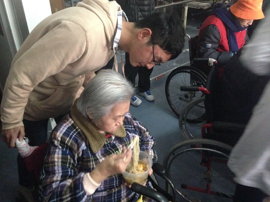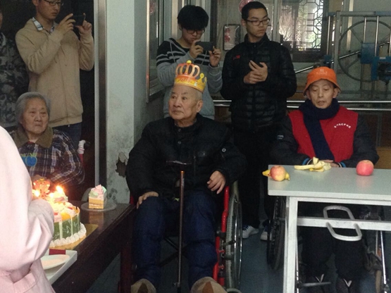 老人们大多高龄,腿脚不方便,有的老人只能一直坐在轮椅上,令人唏嘘不已。见此情景,同学们纷纷热情地走到老人身边嘘寒问暖,使得房间顿时充满了青春活力。原本沉默不语的老人也触景生情,向同学们打开了他们的心扉,讲述着他们曾经的雄心壮志,曾经的青春岁月。同学们仔细倾听,认真思考老人们说的话,频频点头,应和老人的话题,期间所表现出的耐心和关怀展现了技师学子另一面的优秀品质。当天,服务队的同学们还带去了生日蛋糕为当月生日的20多位老人庆生,大家合唱生日快乐歌,老人们都露出了欣慰的笑容。离开前,我系还与福星护理院就签订“共建学生爱心社会实践基地协议”达成了统一意向。