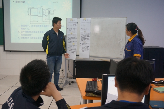 金雁老师是我系普车实习指导教师,拥有22年教龄,长期担任普通车床的实训任务,具有很高的教学指导能力。此次公开课,金老师以任务驱动法贯穿整堂课程。学生分成三组,提出三个问题,让学生带着问题进行任务实施,最后得出问题答案,完成整个任务。任务结束后,金老师通过学生的自我评价和相互评价了解学生整体掌握情况,最后教师总结,让学生进一步加深这次课程所运用到的知识重难点。教学环节紧凑,衔接顺畅,在场听课教师和学生反响良好。