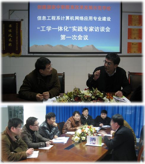 实践专家毛联华,多年从事网络综合布线、路由器和交换机设置以及计算机网络规划工作,具有丰富的实践经验。毛经理详细介绍了工作过程中典型工作任务的特点,如何获取典型工作任务,并从自己经历出发,强调了典型工作任务对从业者职业生涯的重要性。参加会议的老师认真听讲,与专家热烈交谈,收获很多。会议为信息工程系编写以职业生涯为背景、以岗位需求为依据、以工作任务为线索、以工作过程为基础、以能力为本位、以学习者为中心的一体化课程校本教材打下基础。(史治博)