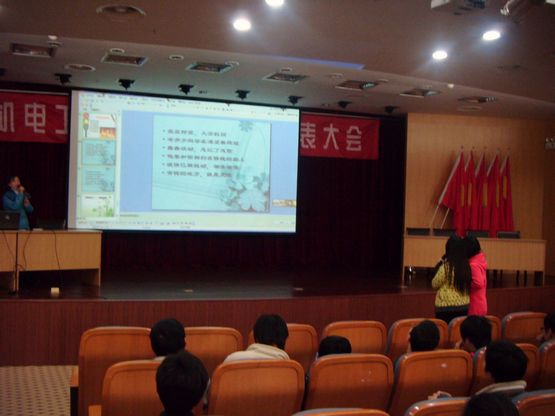 在“点燃梦想”环节,贾老师首先以几个生动的实例说明了梦想的重要性,让同学们体会到了梦想的伟大。之后,在贾老师的鼓励下,很多同学走上讲台,面向大家讲述了自己的梦想。在“培养创业素质”环节,贾老师以大量的图片,配以幽默的台词,让众多知名企业家“现身说法”,让同学们明白了创业不仅需要良好的身体素质、心理素质,还要有相当的知识素质、能力素质、精神素质和道德素质。同学们现学现卖,在训练环节中根据自己的理解,分别阐释了“适应能力、说服能力、远景、自信、竞争能力、毅力”等创业关键词的内涵。在“沟通能力训练”环节中,贾老师以乔吉拉德、三国故事、李开复为例说明了沟通在商业、政治活动的重要性,并希望同学们树立主动与人沟通、随时随地沟通的观念。