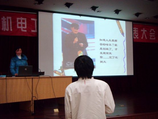 贾老师将课程分为“认识创业――点燃梦想――培养创业素质――训练沟通能力”四个环节,循序渐进地进行,每个环节都有师生互动,极大地调动了学生参与的热情。例如,为了让同学们深刻认识创业的风险,贾老师找了2位同学分别扮演赵本山和小沈阳,让他们模仿小品大师的语言风格,当赵本山的扮演者念出:“知道人生最痛苦的是啥不?就是创业了,才知道有风险,完了还挺大……”的台词时,同学们哈哈大笑,并报以热烈的掌声。几位同学还现场演唱了贾老师根据《千纸鹤》、《月亮之上》改编的歌曲,“找一千个机会,做一千次拼搏,十年后,或许我是CEO……”、 “我在仰望,大学校园,有多少同学在渴望着辉煌,蠢蠢欲动,忘记了风险,他要和你相约在借钱的路上”笑侃不断的歌词让同学们记忆深刻。