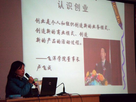 11月25日下午,职业素养训练之创业能力训练课程面向机电07大1、04技师和信息07大3等毕业班的同学闪亮开讲,受到了同学们的欢迎。课程由贾丽琴老师主讲,贾老师同时是《创业能力训练》课程教材的编者。