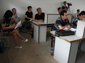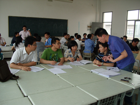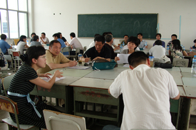 同无锡技师学院同行交流 同行老师们认真填写调查表