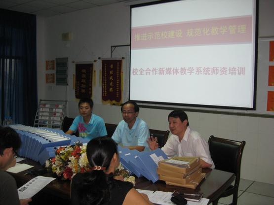 培训中,周经理重点介绍了与系统相配套的遥控器的使用方法,并与教师进入教室进行了生动的现场演示,受训教师很快掌握了新媒体教学设备使用方法,并就新媒体教学手段、效果等与周经理进行了探讨。