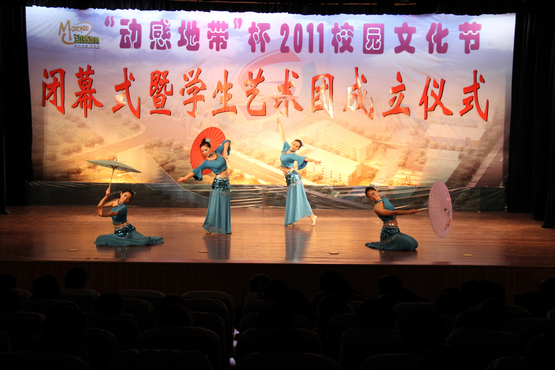 本次仪式由三部分组成:张建平副院长宣读了本届校园文化节各类竞赛活动的获奖结果,领导和来宾为获奖选手代表颁奖;学生艺术团揭牌成立;2011校园文化节闭幕式文艺演出。