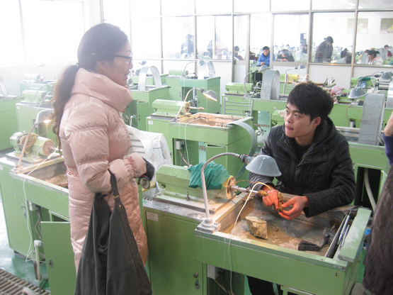 工艺美术系主任、扬州玉器学校负责人李幸生热情接待我校调研组参观了开料室、玉雕实训教室、师生作品陈列室等场所,随后李主任就玉雕专业课程建设、实训室建设、考工方案、师资队伍建设以及校企合作与项目组一行进行了深入交流。