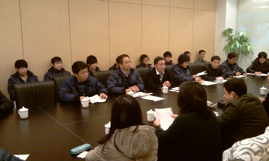 参观之后,院方、企业方和10余名毕业生、实习生在会议室进行了面对面的亲切交谈。机电0402 陈晓龙同学进入公司一年多,目前已是切片班长,他说,协鑫公司很注重员工培养,他们在公司接受了多次培训,技术、能力等方面都在快速成长;机电0724盛剑豪同学不久前被提升为清洗班长,他表示公司待遇好,管理规范,他们愿意在公司长期工作;其他毕业生也都一致认为,公司给员工提供的晋升空间大,只要努力,就有机会(学院10余名毕业生有的是主操手、有的是班组长,有的已经成为区域主管),并且公司人文关怀浓厚,他们很有归属感。