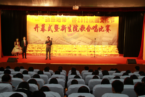 2012年11月16日下午,以“发现、发挥、发明、发展”为主题的我院“动感地带”杯2012校园文化节开幕式暨新生院歌合唱比赛决赛在学院会议中心汇演大厅隆重举行,全体院领导,学院各部门负责人,相关教师,450余名学生代表及400余名演员共同出席了本次盛会。