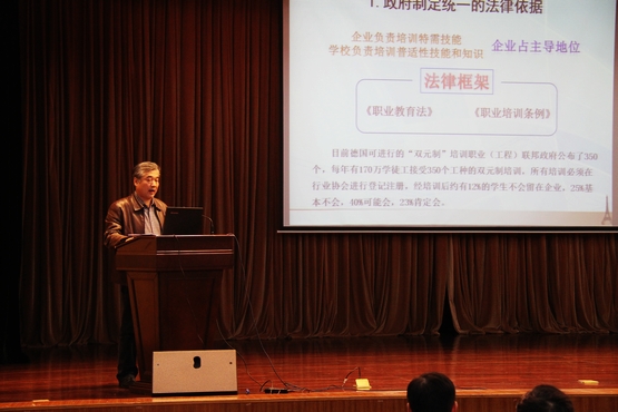 会上,甘志雄、张建平、顾颂虞、夏国亭、许志刚、汤晓红、许琪、单进、李敏9位同志分别介绍了培训学习情况和心得。其中,甘志雄院长介绍了德国双元制职业教育的特点、优势,以及对国内职业教育的启示,甘院长特别提到,德国职业院校对教师的要求比较高,教师既要具备专业学习经历,也要有2年左右的企业实践经验,并且在学校要经过2年实习,通过严格考核,才能被学校正式聘用。张建平院长介绍了赴加拿大学习的组团背景,学习培训的主要内容,以及加拿大当地媒体对学院考察学习的报道情况。汤晓红老师对中加两国职业教育的办学模式、办学特色进行了对比,并指出了此次学习对示范校项目建设的借鉴意义;单进老师与大家分享了新加坡职教的教学工厂理念、无界化校园理念以及教师之间的经验积累与分享理念。