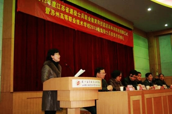 会议首先由民政局安置处处长董开全宣读苏州高等职业技术学校及苏州农校、英国365集团官网被省授予2013年退役士兵技能培训承训学校的文件。