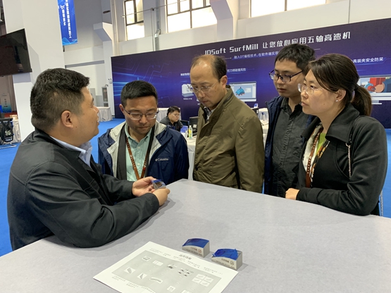 公司培训部经理于云首先陪同我系一行参观UM加工体验区,详细介绍精雕公司的培训模式和集团自行研发的机器、软件以及制作的精美工艺品。