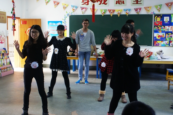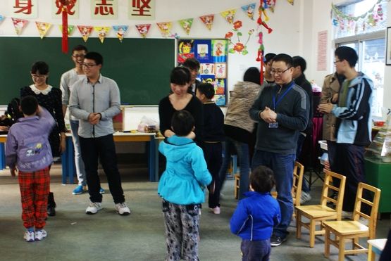 志愿者们还给小朋友们分发了礼物食品,并与小朋友门互动交流,最后大家一起共跳舞蹈《江南style》,把活动推向了高潮。