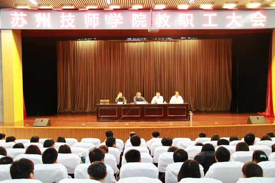 2013年5月3日下午,学院在会议中心召开了全体教职工大会,甘志雄院长就6月即将到来的示范校验收工作进行了全员动员,要求全校教职工积极参与,协调配合,确保高质量通过验收。