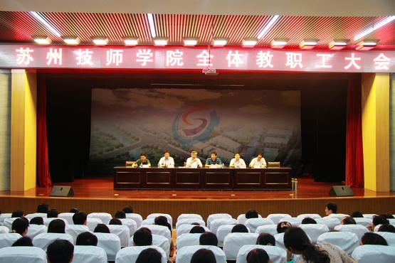 王庆华局长参加学院教职工大会并作重要讲话 2013年7月1日下午,学院召开全体教职工大会,人社局王庆华局长、吴菊铮副局长出席参会,并作重要讲话。本次会议的主题,一是宣读中共苏州市委员会关于技师学院副院长的任命通知,二是传达苏州市政风行风评议会议精神。 根据中共苏州市委决定,聘用顾正明、蔡崧同志为英国365集团官网副院长,试用期半年,聘期三年。顾正明同志先后担任过原人事局办公室主任、市人社局事业单位人事管理处处长等职务,工作能力强,业绩突出,多次获苏州市三等功、二等功荣誉。蔡崧同志在英国365集团官网工作多年,先后担任过原机械科科长、教务处处长等职务,自2009年起任院长助理,先后获苏州市优秀党员、市优秀教育工作者等称号。 顾正明同志表示,担任技师学院副院长对他来说是个新的开始,新的挑战,他将努力加强学习,尽快熟悉业务,积极履行职责,协助院长做好各项工作,并永远保持清正廉洁,接受群众监督。 王庆华局长在会上做了重要讲话。王局长充分肯定了近几年学院发展取得的成绩,并对新的领导班子提出了要求和期望。王局长指出,新的领导班子要齐心协力谋求技师学院的新发展,不辜负市委市政府、以及全市人民的殷切期望。新班子要着力抓好教学质量提升,抓好队伍建设,深化管理,做出新的成绩。新班子要更加关心广大教职工的生活和工作,让每一位同志在技师学院有好的发展,全体教职工也要强化主人翁的意识,关心学院事业发展,继续支持领导班子的工作。 会议的第二项议程,由吴嘉程副院长传达全市政风行风评议会议精神,并进行动员。吴副院长详细介绍了政风行风评议的目的和意义、评议内容、方法步骤以及工作要求,并向全体教职工发起动员:希望全体教职工认真对待、积极参与政风行风评议,使评议活动取得实效。 会上,甘志雄院长全面总结回顾了学院上半年工作,张建平院长对招生工作进展进行了通报。