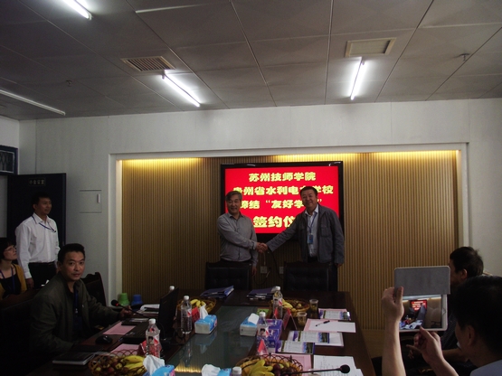 10月11日,我院甘志雄院长在贵州水利电力学校与该校校长陈海梁共同签署了《缔结友好学校框架协议》。双方将本着“优势互补、资源共享、友好合作、共同发展”的原则结对共建,深化技能人才培养工作。