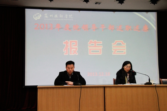 按照干部管理规定,学院领导干部于2013年12月18日进行了年度述职述廉。人社局组织人事处处长张红主持会议,学院中层干部参加。