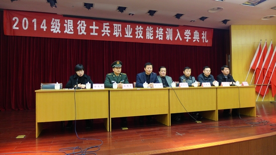 2014级退役士兵技能培训学员入学典礼于1月4日在学院会议中心一楼报告厅隆重举行,苏州市民政局副局长张继红、苏州市民政局安置处处长刘战平、苏州军分区政治部相关领导张慧军、苏州市人力资源和社会保障局职业能力建设处处长蔡旭卫参加了会议。入学典礼由学院培训管理处处长朱菊平主持。