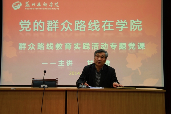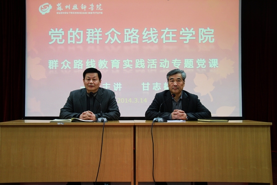 3月14日下午,学院举行党的群众路线教育实践活动专题党课。学院党委书记、院长甘志雄作了题为《党的群众路线在学院》的党课报告。重点阐述了“如何深化对党的群众路线和教育实践活动的认识?”、“党的群众路线在学院的实践和启示”、“如何落实好教育实践活动各项目标任务”三个问题。学院全体党员参加了党课学习。