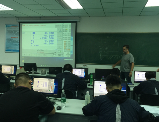 11月5日下午,鲍曼先生在6A201上了精彩的一课,机电工程系许琪主任及相关专业老师观摩了此次指导课。本课主题是“HEIDENHAIN530操作系统的基本指令编程和软件模拟”,鲍曼先生通过幽默生动的语言介绍了该操作系统方便、简单、快捷的性能特点,耐心细致地演示了适用于铣、钻、镗和加工中心的数控系统。鲍曼先生讲解透彻,深入浅出,并结合一个个实际案例,通过讲解、示范、引导,启发学生积极思考,激发学生的学习兴趣,让每一位学生都能独立完成案例的加工工艺分析和编程,为我系教师开展教学改革提供有力指导,受到在场师生的一致好评。