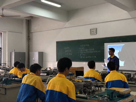 刘春杰老师的《机械装调实训》课程,选取“变速箱的拆装”这一运用实体装配的典型案例,让每个学生学中做、做中学,充分掌握变速箱的拆装步骤及工艺,刘老师细心巡回指导,进一步巩固了学生课堂所学知识。贾璐老师的《工程识图与制图》课程,选取了“立体表面点的投影”这一课题,采用任务驱动法进行教学,引导学生将棱柱表面上点的投影方法应用于平面体,学以致用。