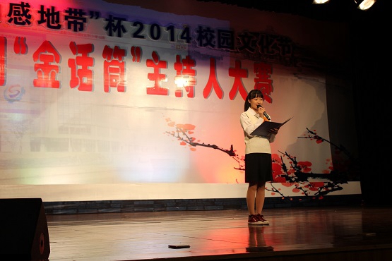 11月19日下午,学院会议中心二楼汇演大厅座无虚席,掌声不断。 2014“动感地带”杯校园文化节以“展我主持风采、星耀技师舞台”为主题的“金话筒”主持人大赛如期举行。