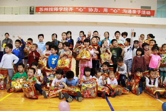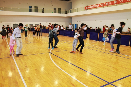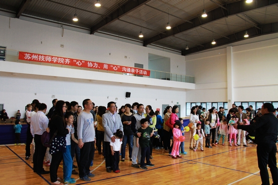 5月18日下午,学院体育馆人声鼎沸,热闹非凡,学院首届亲子活动正在这里欢乐举行。65个家庭参与了活动。