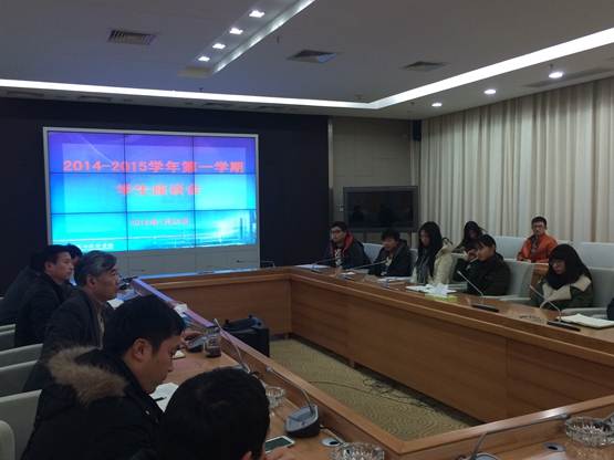 1月23日下午,学院组织召开了2014-2015学年第一学期学生座谈会。会议由院党委委员、副院长顾正明同志主持,院党委书记、院长甘志雄、教务处、招生就业处、后勤处、保卫处、学生工作处、团委等部门的主要负责同志参加了本次座谈会。