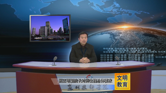 为深入践行社会主义核心价值观,结合我院学生职业素养提升工程,倡导社会文明新风,3月13日班会课期间,学生工作处、团委利用数字化媒体中心开展了“告别不文明行为,从我做起”电视教育大会,全院同学在教室进行了集体学习。