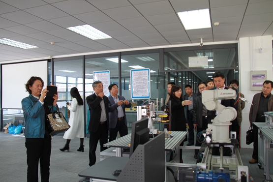 来宾参观了学院数控技术、轨道交通、西门子控制技术、综合布线、中餐、西餐、宾馆服务、缂丝、刺绣、旅游管理等多个实训室,听取了工作人员对设施设备、实训教学等方面的介绍。