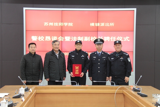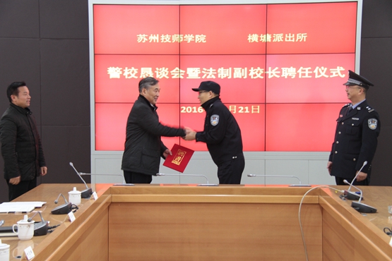 首先,甘院长代表学院向横塘派出所颁发法制副校长的聘书。随后,保卫处王静芬处长就学院治安防范工作开展情况和安全建设上存在的问题做了汇报发言;横塘派出所朱军所长就目前苏州市的治安状况及学校周边区域四校治安防范的不同点做了介绍,他用“领导重视、管理到位、工作扎实”12个字充分肯定了我院安全工作的成效,强调校园安全建设是辖区派出所的工作重点之一,派出所将继续完善“一校一警”制度,与学院保持紧密联系,加大校园周边治安的管理和巡查力度,采取相应的安全措施,为学院的平安和稳定创造良好的环境,为师生安全保驾护航。