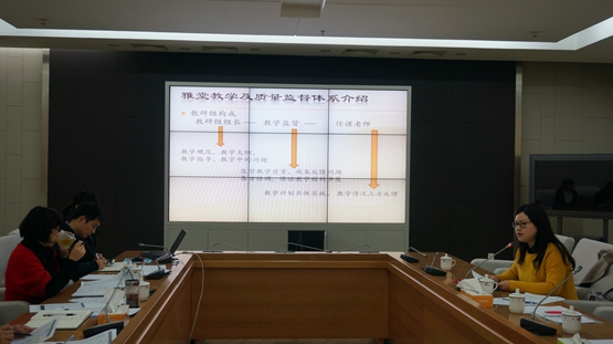 搭建德语学习服务平台,建立三方紧密合作关系 ――我院组织召开第一次德语教学教研活动 为了给学院中德国际合作班学员搭建更好的德语学习和服务平台,进一步促成学院、雅堂、家长三方的紧密合作关系,2016年11月11日上午,在会议中心一楼会议室召开了我院第一次德语教研活动,院领导甘志雄院长、蔡崧副院长出席会议,雅堂职业教育培训中心张琳总经理与德语教研组成员、教务处全体成员、相关系部主任及中德班班主任参加了此次会议。会议由雅堂教学主管徐蓓蓓主持。 会议围绕“致力为学员创造最好学习环境、提供最好学习条件”主题展开研讨,主要有三个议程:一是两位德语教师汇报了第一次德语月考的考核成绩;二是雅堂德语教研组组长洪超超从雅堂德语教研组构成、职责分工、质量监督体系、课程模块构建等几个层面,简要介绍了德语教学计划;三是两位德语老师进行了简短的说课展示。 教务处王丽华处长对雅堂教育给予我院德语教学的支持表示了由衷的感谢,同时提出了几点要求和建议:一是任课教师要在严格掌控教学课堂纪律的基础上,要将“原则的把控”和“情意的结合”拿捏得恰到好处;二是任课教师应做到丰富课堂内容和提高教学效果共进,完成教学目标;三是班主任、任课教师、系部、家长应多方配合,对于目前发现的问题学生应积极采取改进措施和跟踪指导。 蔡崧副院长指出,本次月考成绩反映了学生德语掌握情况良好,同时也反映出急需解决的几个问题:首先,要积极鼓励、引导学生转变不良学习态度,养成良好学习习惯;其次,任课教师应注重教学艺术手段,提升教学效果;再次,各班应充分利用课余时间,采用多种形式营造良好学习氛围;最后,学院、雅堂教育、家长之间应及时沟通,树立信心、积极配合、形成合力,努力培养学生学习兴趣,提高专业能力。 甘志雄院长在教研会上作了重要讲话,甘院长首先肯定了雅堂教育德语教学取得的成绩,表达了学院对中德国际合作班德语教学工作的高度重视,认为只有通过学院和雅堂教育双方共同合作,学校、家庭、社会的有机结合,建立起完全的信任度、配合度、默契度,才能真正推进我院德语教学工作。甘院长指出:要明确此次教学研讨会的目的,分析德语教学实施过程中出现的问题;要大胆尝试创新,跳出传统教学研讨活动模式,针对中德国际合作班学员的实际情况,研讨德语语言教学方式;要确保为学生提供最佳的学习环境,通过对学生进行正确的学习引导,结合家长、班主任、任课老师的配合,建立一套科学有效的德语教学方法。 最后,相关系部主任、中德国际合作班的班主任及雅堂德语教研组成员,针对班级的具体情况、德语学习的推进整改措施等方面进行了交流与讨论,并就如何更好地进行教学质量监督等事宜进一步交换了意见。本次教学研讨活动,确定了“全方位更紧密合作关系”的必要性和紧迫性,为保证学院中德国际合作班德语教学教研工作的顺利进行奠定了基础。(陆雯) 教务处 2016年11月14日