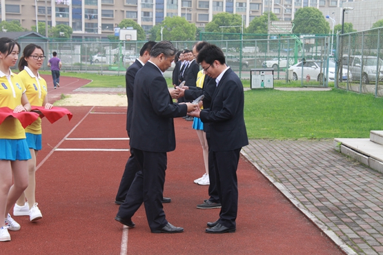 2016年5月23日上午8时许,全院师生齐聚学院田径场举行隆重的升旗仪式暨第十八届田径运动会团体奖颁奖仪式。颁奖仪式上,蔡崧副院长代表第十八届运动会组委会宣读了本届运动会的团体成绩,院领导及各部门负责人为获得优胜的代表队代表颁发了奖杯及荣誉证书。