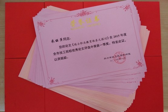 2015年度全市技工院校优秀论文、教案评选中我院喜获佳绩