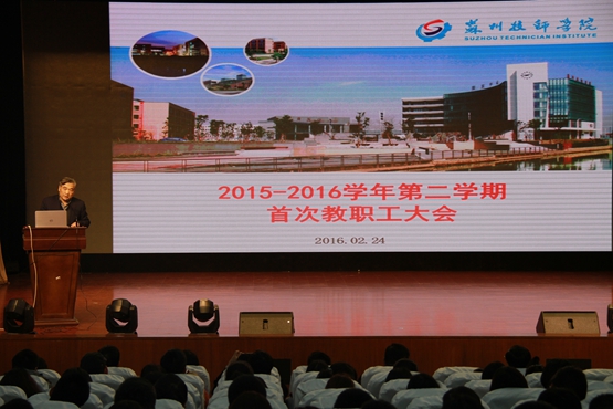 2016年2月24日,学院在会议中心二楼报告厅召开新学期全体教职工大会,总结2015年工作,部署2016年重点,为新学期的开启新征程统一思想、明确目标、鼓舞士气。全体院领导出席会议,会议由余新利副院长主持。