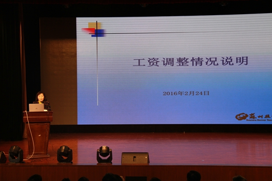 组织人事处陈安琪主任就工资调整相关情况作了详细说明。陈主任围绕“调整机关事业单位工作人员基本工资标准,是贯彻落实党中央、国务院的决策部署;改革事业单位工资津贴、补贴制度的重要举措,是实施机关事业单位养老保险制度改革的重要配套措施”的背景,以典型的案例,全面解读上级文件,让全体教职员工了解到工资调整的范围、调整的依据、补发额的计算方法等。